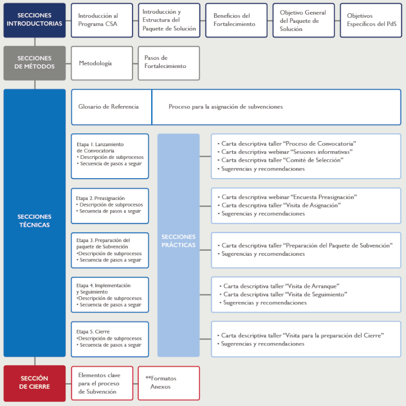 El Paquete de Solución Modelo de Gestión y Administración de Subvenciones, busca constituirse como una herramienta que le permita tanto a financiadores (ya sean agencias de cooperación, fundaciones, instituciones gubernamentales, etc.), así como a organizaciones de base, conocer de forma esquemática y organizada, el proceso para la asignación y administración de subvenciones en su totalidad, es decir, tanto las diversas etapas y componentes que lo conforman, como los requisitos y sub-procesos que integran cada etapa, con la finalidad de proporcionarles una guía de referencia para el desarrollo y/o fortalecimiento de sus procesos de asignación y administración de subvenciones.